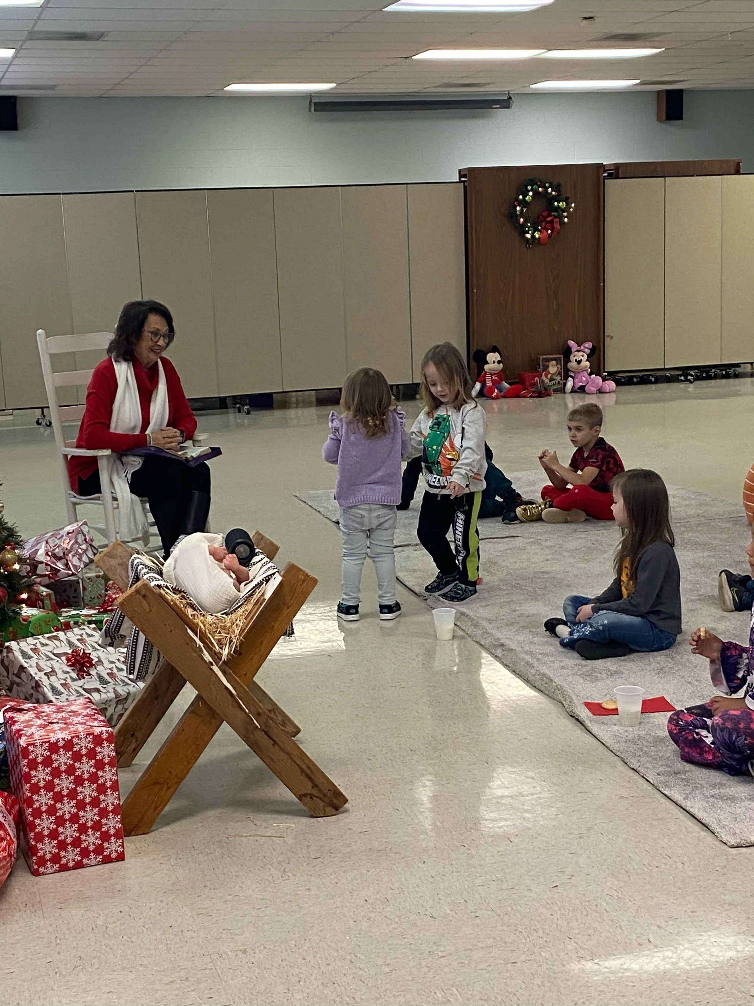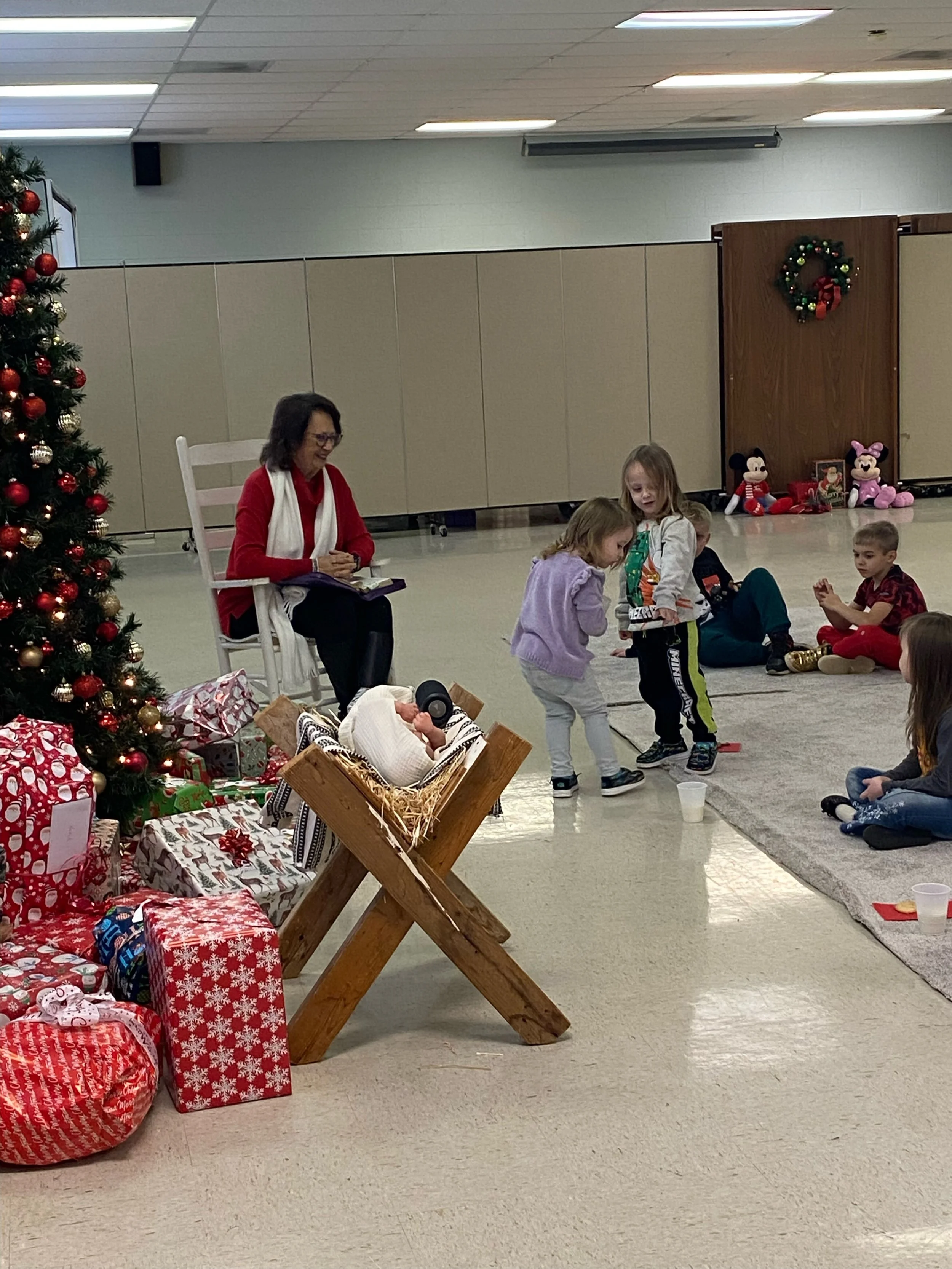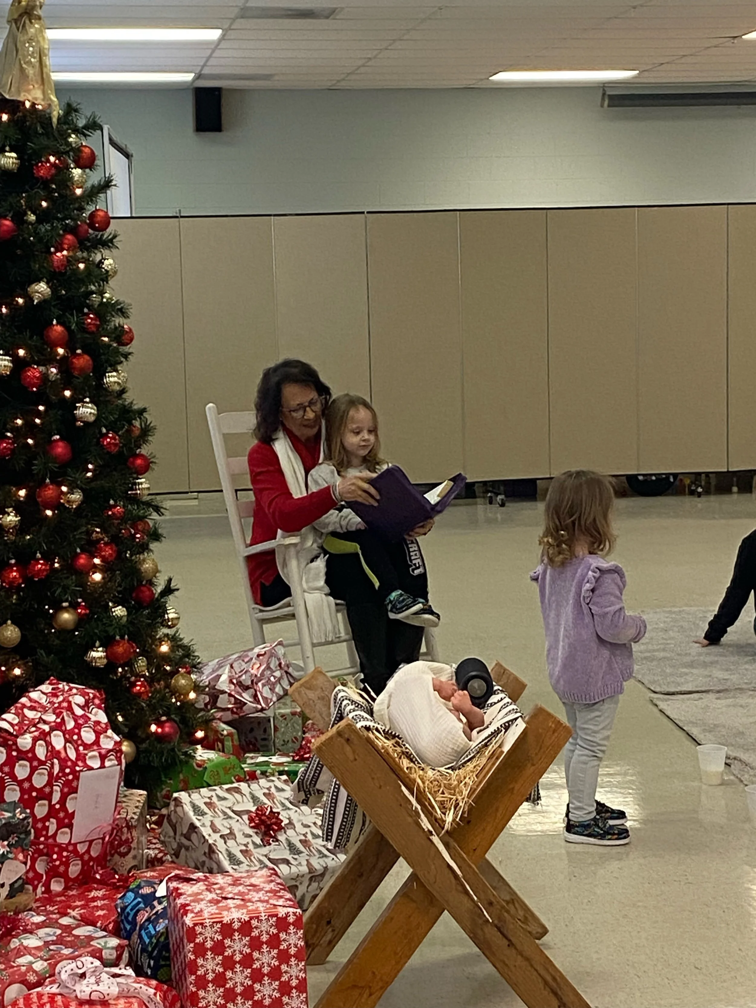 Pfafftown held our first angel tree event. Names were placed on a tree and members gave a gift of around $25 dollars to each child’s name then the Christmas party was held on December 6th, 2025. There were 77 people in attendance for this event. Each child went home with a special gift and heard the Christmas story.